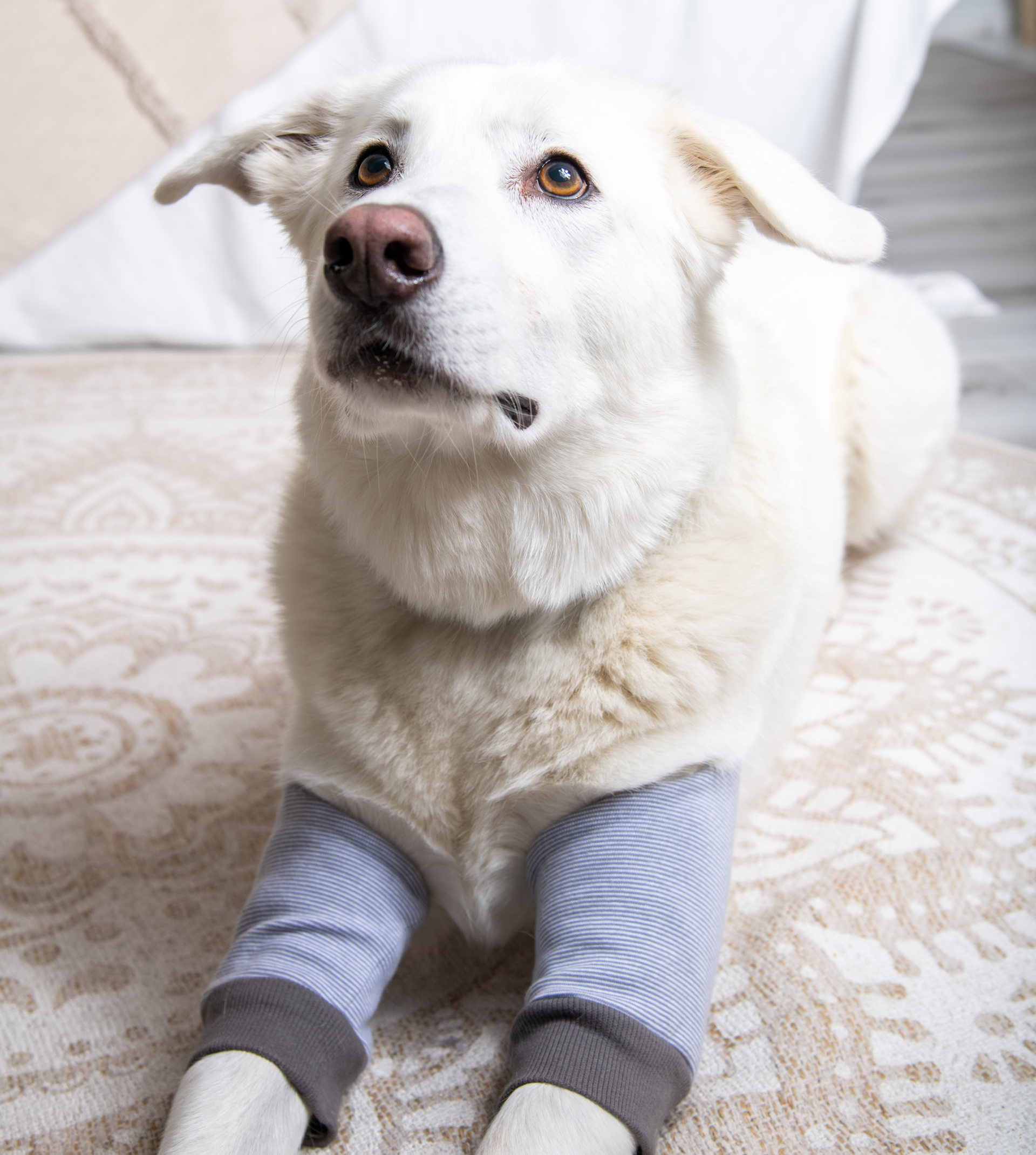 Wir setzen auf hochwertige Stoffe und eine durchdachte Polsterung, damit der Ellbogenschoner atmungsaktiv bleibt und deinem Hund angenehmen Tragekomfort bietet.